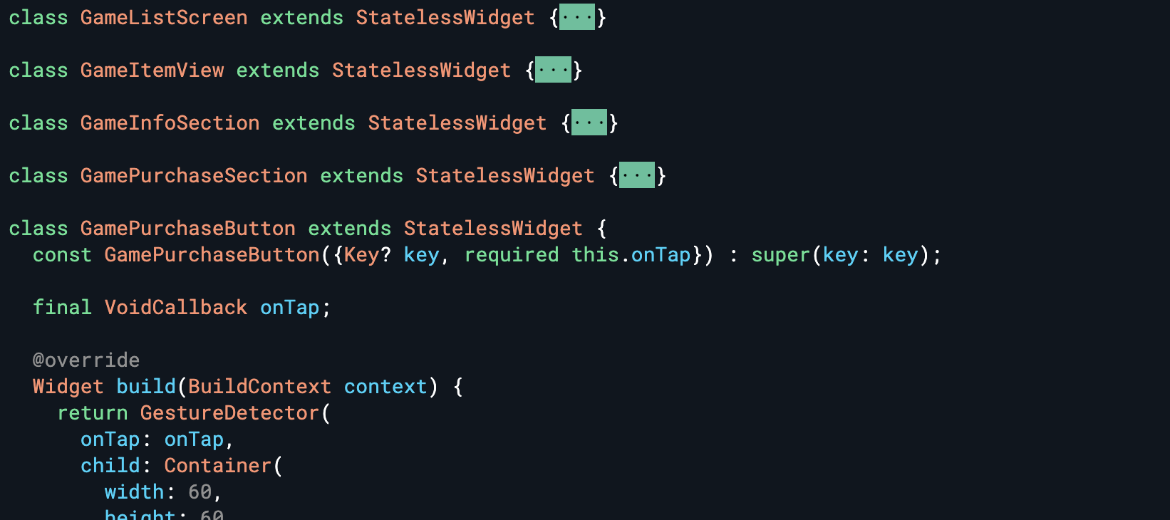在經歷過前幾天討論的主題,有時候我們會發現,經過不斷地重構,最終按鈕事件是在子 Widget 中綁定。在下面的例子中,GameItemView 是列表中的每一個 Item,而當中包含一個購買按鈕。為了讓按鈕能正常工作,我們把 buyGame 方法當作參數,一路向子 Widget 傳,直到購買按鈕裡頭的 GestureDetetor。